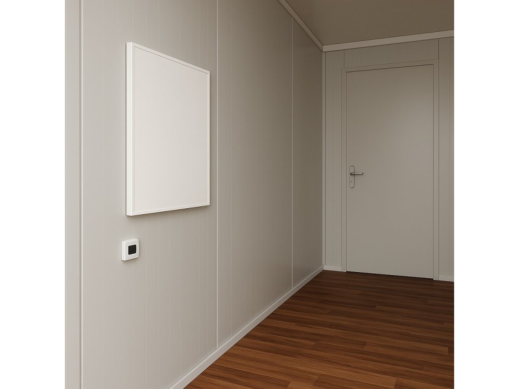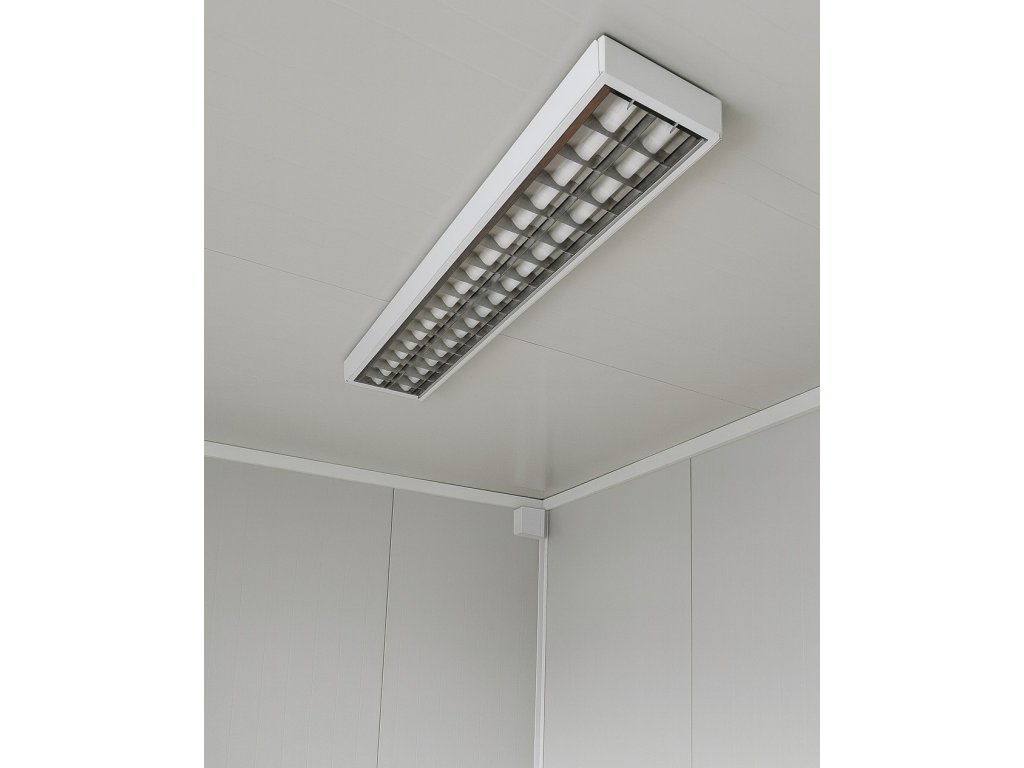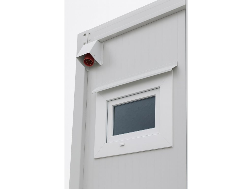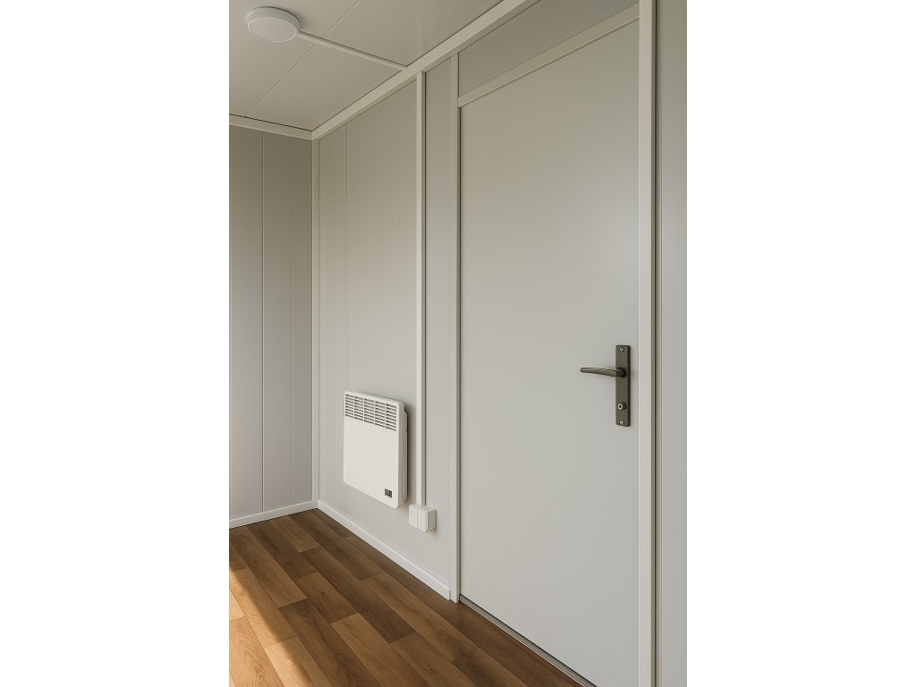 Na přání zákazníka může být každý kontejner vybaven kompletní elektroinstalací podle norem ČSN / DIN. Standardní rozvody jsou vedeny v lištách po stěnách, takže lze zásuvky, světla i vypínače snadno rozmístit podle individuálních požadavků. Elektroinstalace je volitelnou doplňkovou výbavou a dodává se za příplatek podle rozsahu a typu kontejneru. Nabízíme různé varianty elektrického vytápění, ohřevu vody i osvětlení – od klasických přímotopů až po moderní keramické panely a úsporná LED svítidla.