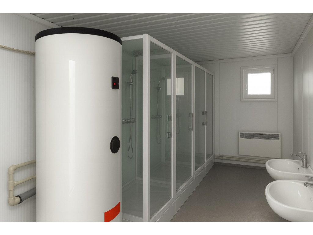 Pro kontejnery se sociálním zázemím dodáváme kompletní systém ohřevu vody: