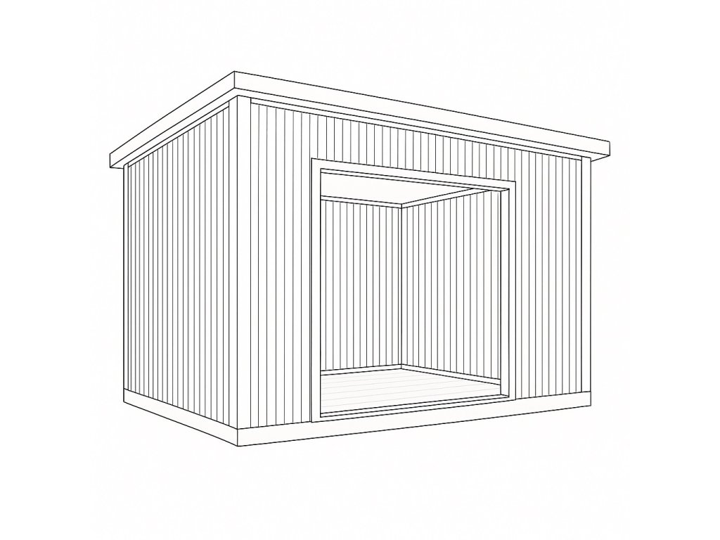 Objekt je v základním provedení dodáván bez garážových vrat. Různé typy uzavření, včetně sekčních nebo dvoukřídlých vrat, nabízíme volitelně podle požadavků zákazníka. Díky tomu lze modul snadno přizpůsobit pro uskladnění motorky, jízdních kol, zahradní techniky nebo dalšího vybavení.
