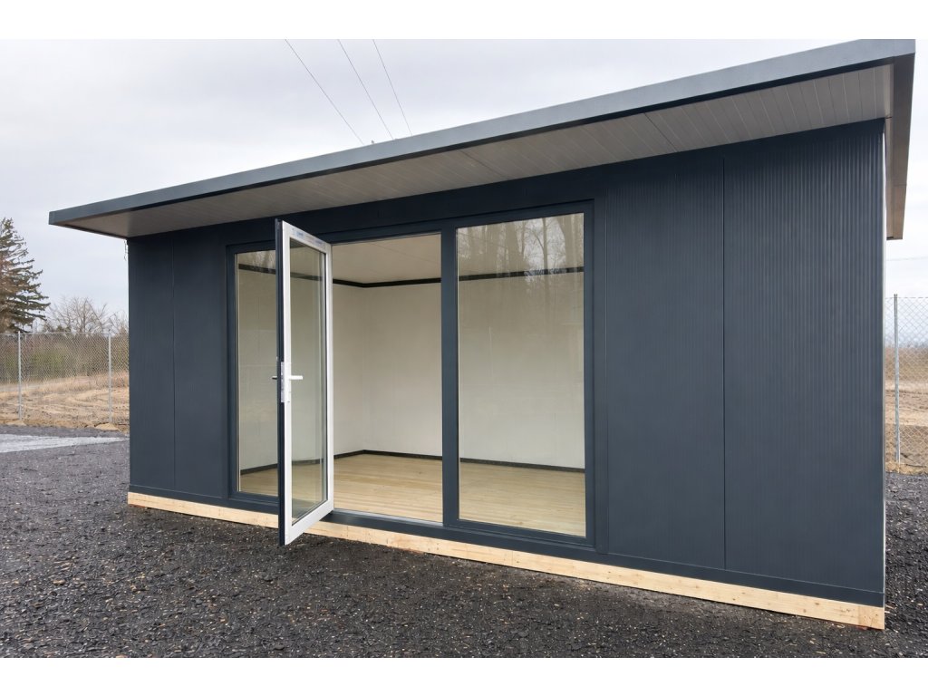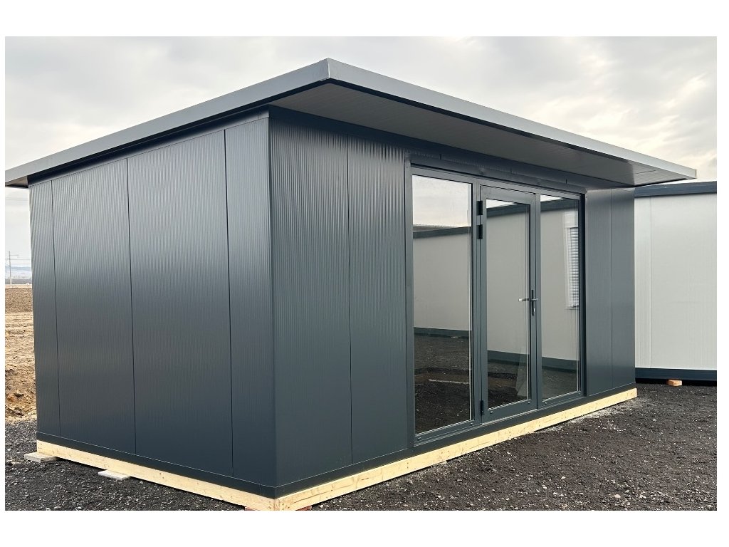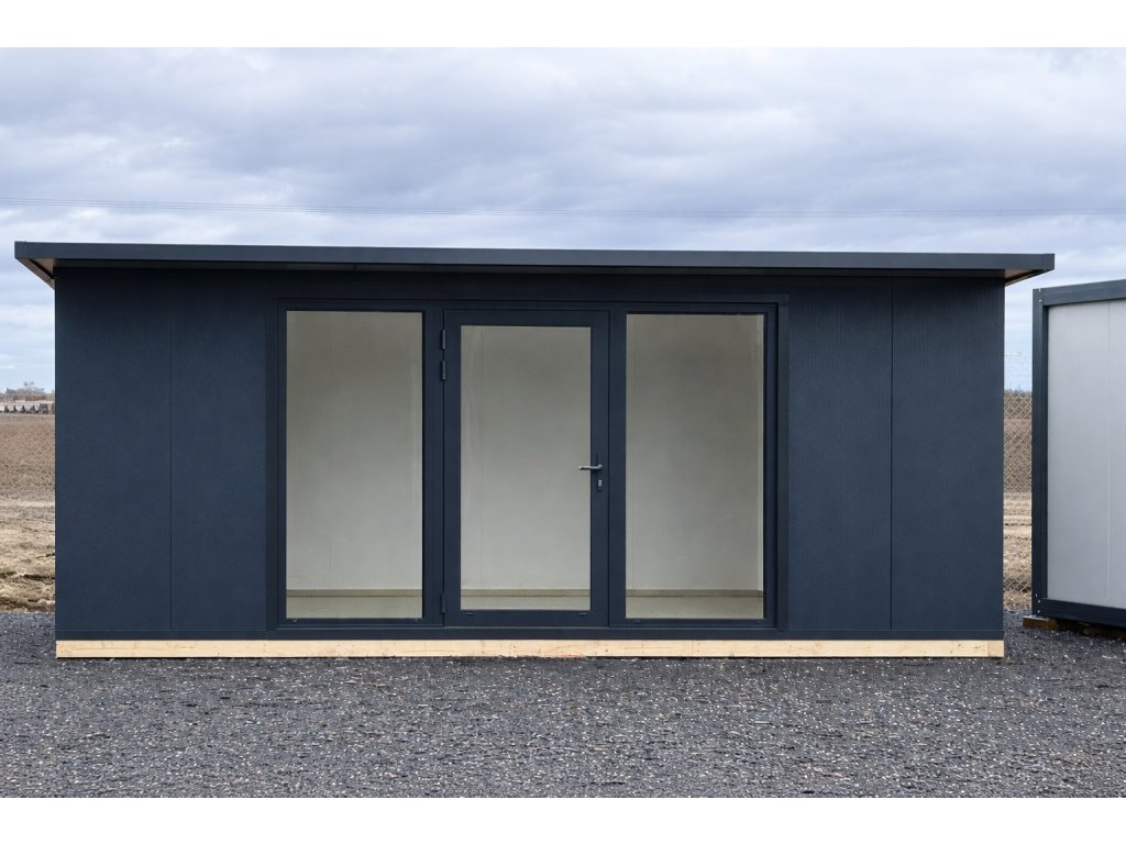 Moderní vzhled, čistý design a velkoformátová prosklení dodávají prostoru světlo a vzdušnost. Vhodné jako kancelář, showroom, provozovna, hobby místnost nebo samostatné zázemí u rodinného domu. Na výběr provedení: antracit, dřevodekor nebo bílá. Rozměry, okna i dveře přizpůsobíme na míru.