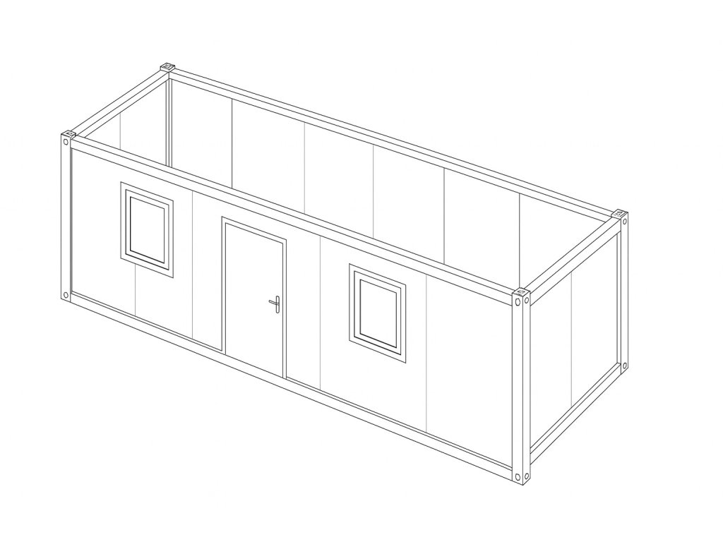 Dvě okna poskytují dostatek denního světla a příjemné klima v interiéru. Kontejner lze upravit podle individuálních požadavků a je možné jej osadit na vozík pro použití jako mobilní kancelář nebo mobilní zázemí.