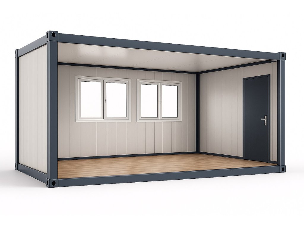 Obytný kontejner 7 × 3 m – izolovaný, 2× okno + 1× dveře