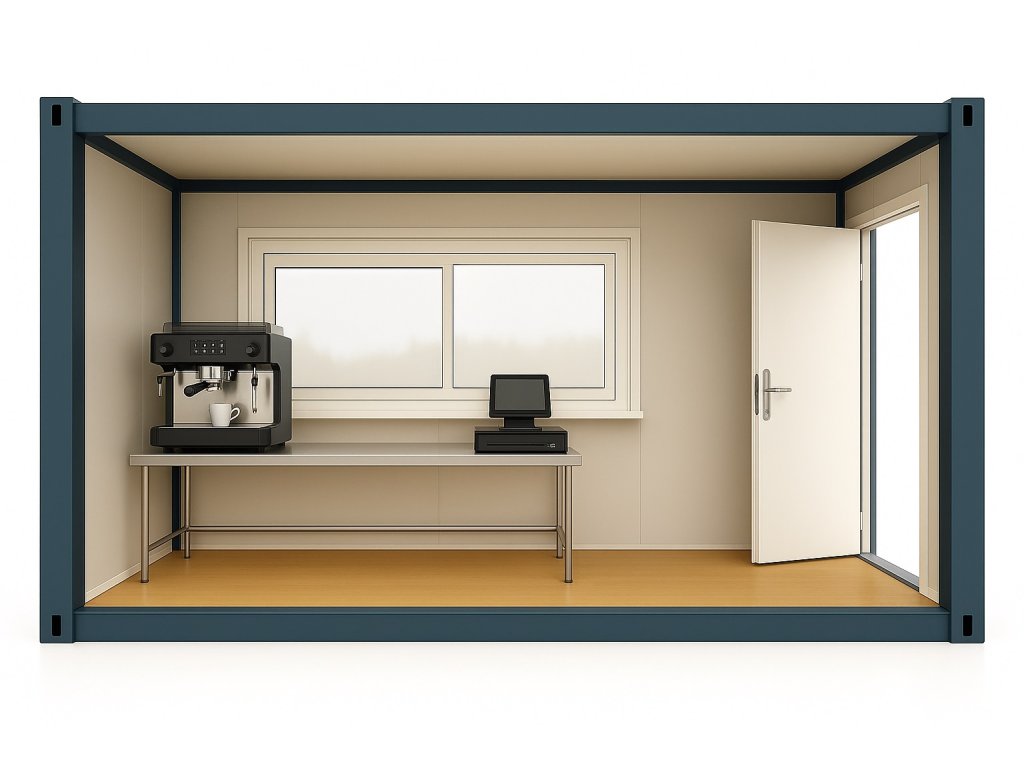 Mobilní stánek na občerstvení 6 × 2,4 m – ideální pro kávu, pizzu či street food. Stylový kontejner s výdejním oknem na míru je skvělou volbou pro rychlé občerstvení i sezónní prodej. Vysoká izolace, snadná údržba a čistý moderní vzhled.