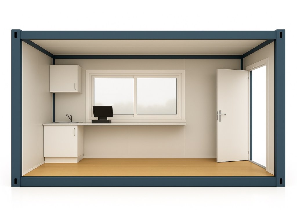 Prodejní kontejner o rozměrech 6 × 2,4 m je praktické a univerzální řešení pro rychlé občerstvení, kavárnu nebo prodej pizzy, palačinek či nápojů. Díky kvalitní izolované konstrukci ze sendvičových panelů je vhodný pro celoroční provoz a splňuje požadavky na hygienu i snadnou údržbu.Dominantou je výdejní okno s posuvným systémem, které se vyrábí na míru podle potřeb zákazníka. Standardní rozměr činí 1900 × 1200 mm, přičemž jedna část je fixní a druhá posuvná – ta se zasouvá za sousední polovinu okna. Na přání lze doplnit bezpečnostní roletu pro uzavření výdejního prostoru mimo provoz.Kontejner je díky svému praktickému uspořádání ideální volbou pro podnikatele, kteří hledají mobilní, snadno přemístitelné a rychle připravené řešení. Interiér je možné přizpůsobit pro kavárnu, bistro nebo pizzerii, včetně instalace gastro zařízení.