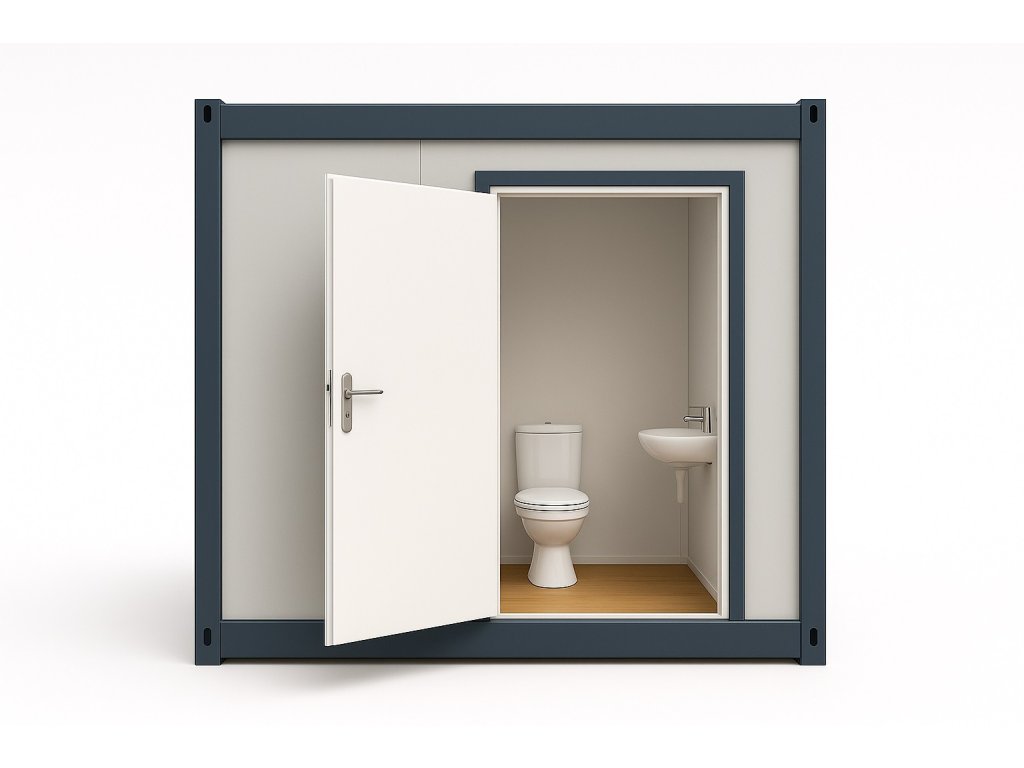 Praktický a kompletně vybavený sanitární kontejner s toaletou, umyvadlem, sprchovým koutem a elektrickým bojlerem. Ideální řešení pro stavby, kempy, rekreační areály i firemní zázemí.