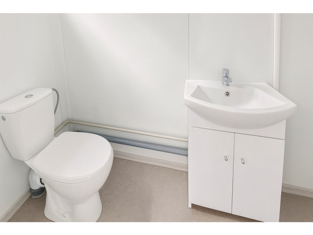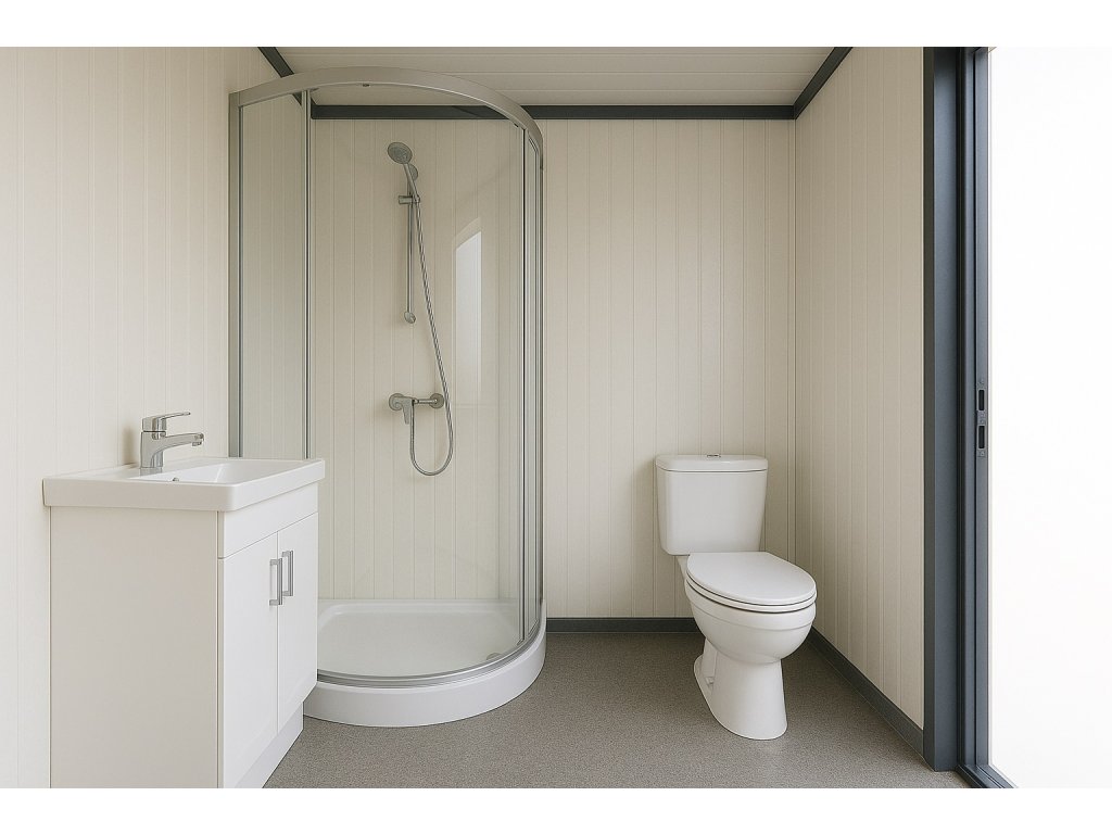 Sanitární kontejner 4 × 2,4 m – WC, sprchový kout a umyvadlo