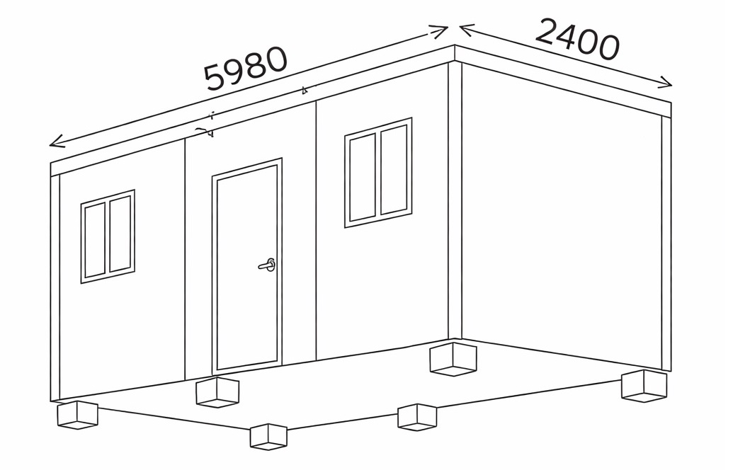 Kontejner je nutné usadit na rovný a pevný podklad – doporučujeme patky ze ztraceného bednění ve výšce min. 10 cm nad terénem kvůli odvětrání.