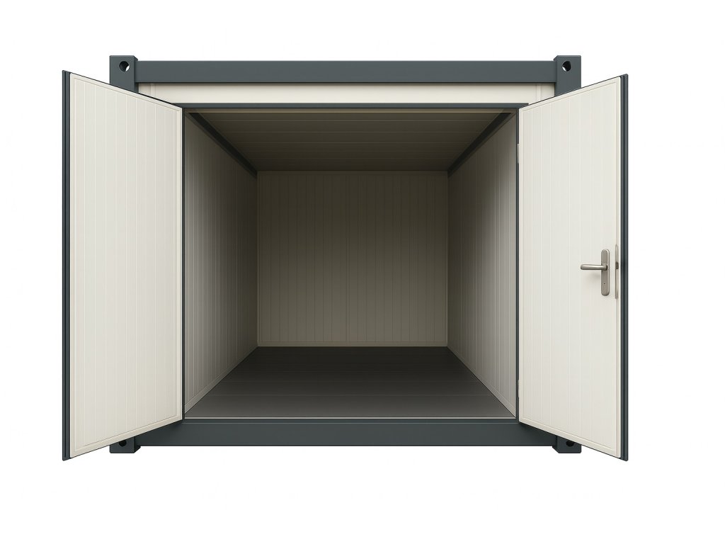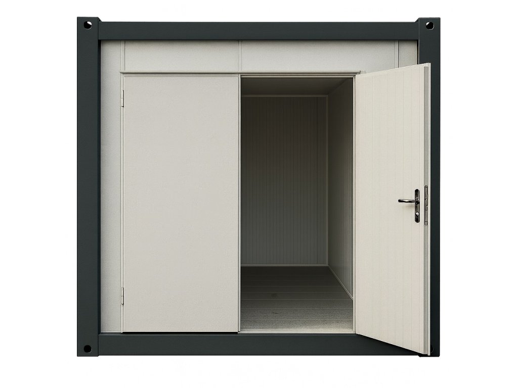 Zateplený skladový kontejner 6 × 2,4 m s dvoukřídlými dveřmi umístěnými na delší straně umožňuje plnohodnotný přístup a maximální využití vnitřního prostoru. Sendvičové panely s účinnou izolací a pevný ocelový rám zajišťují spolehlivou funkčnost po celý rok.