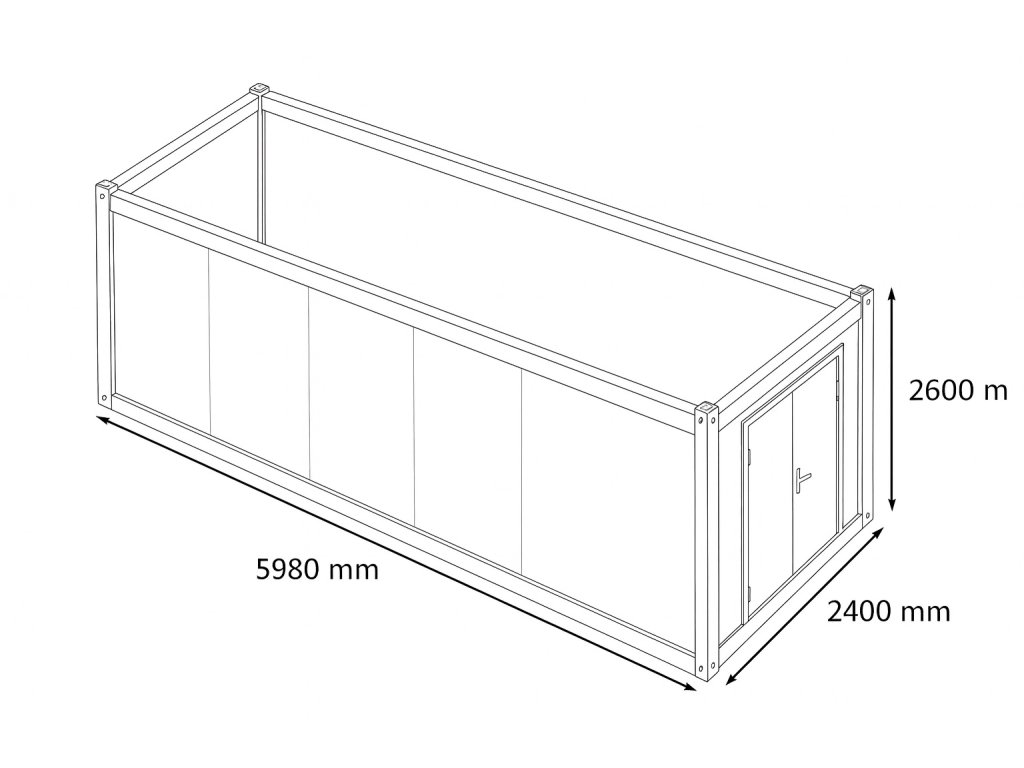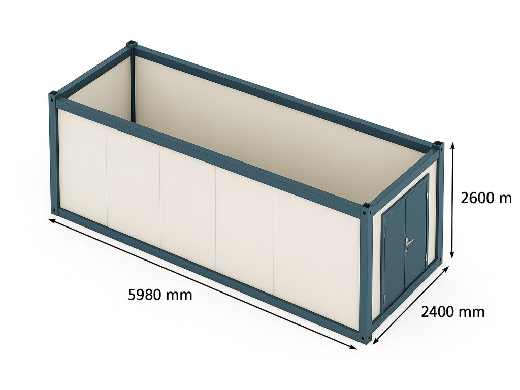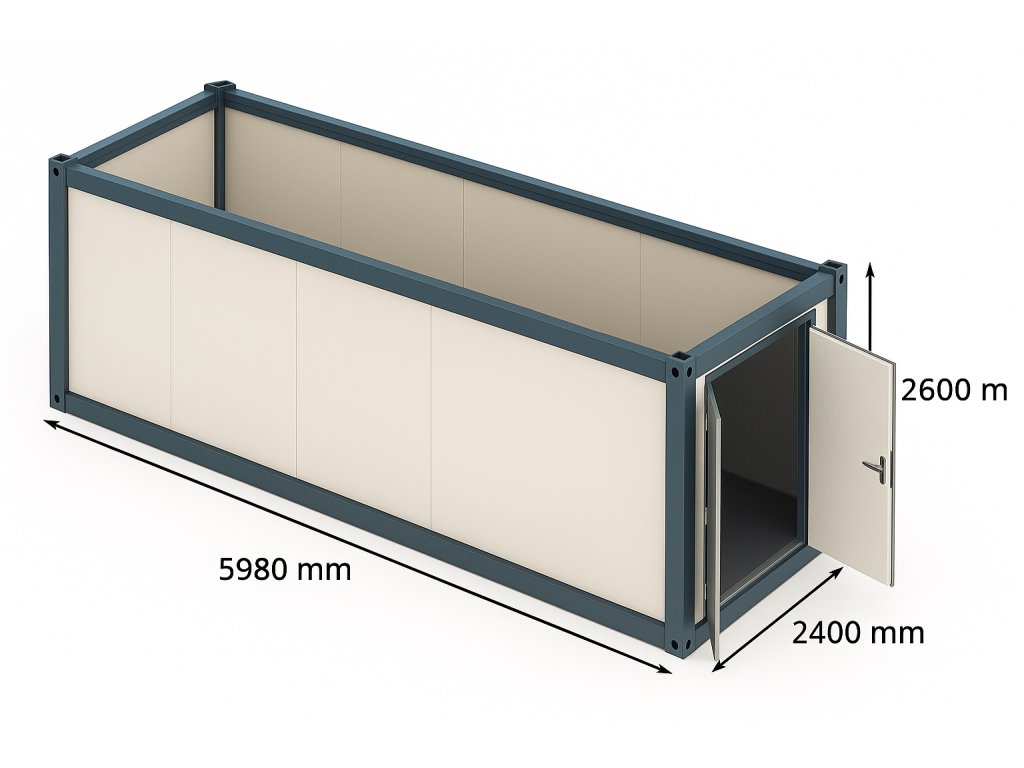 Tento zateplený skladový kontejner o délce 6 m a šířce 2,4 m představuje praktické a univerzální řešení pro uskladnění nářadí, materiálu nebo zboží. Konstrukce je tvořena ocelovým rámem v odstínu RAL 7016 a stěnovými panely RAL 9002 s tepelnou izolací, které chrání uložený obsah před vlhkostí i výkyvy teplot. Dvoukřídlé dveře umístěné na delší straně poskytují pohodlný přístup do celého prostoru, což umožňuje snadnou manipulaci i s rozměrnějším materiálem. Kontejner je vhodný pro staveniště, provozy, zahrady i průmyslové areály. Na přání lze doplnit okna, elektroinstalaci, osvětlení nebo vnitřní příčky podle požadavků zákazníka.