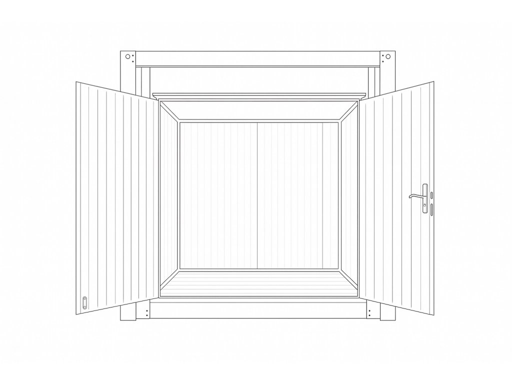 Okno: v základním modelu není zahrnuto žádné okno. Za příplatek lze doplnit okno o rozměru 970 × 1200 mm nebo menší variantu 400 × 600 mm.